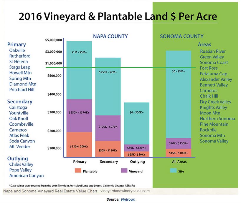 2016 Cost of Vineyard & Plantable Land $$ Per Acre Source: