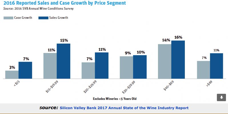 Sales of premium wines continue to grow, especially in the $15-$19.99 and $40 to $69 price range. The 2016