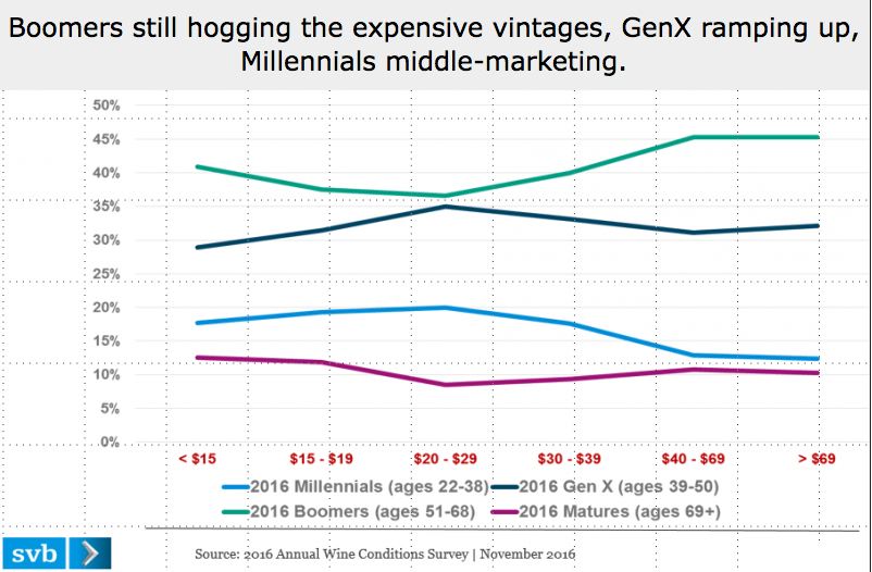 The growth in the $40-$69 range continues to be dominated by Boomers (ages 51-68) and Gen X (ages