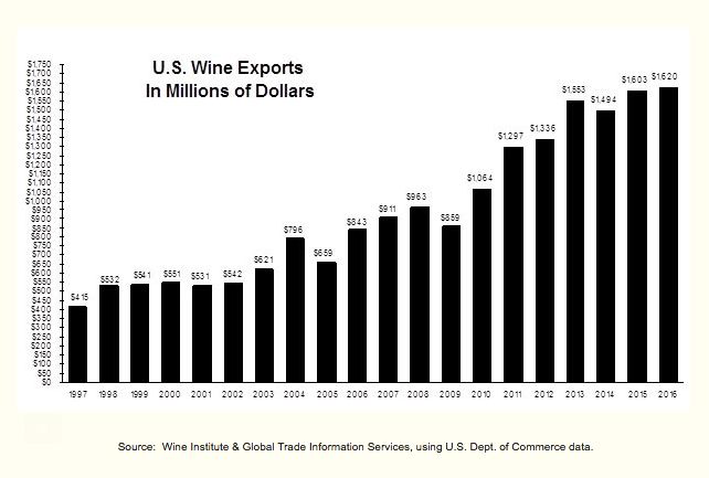 U.S. Wine Exports Reach Record $1.62 Billion in 2016 California accounted for 90% of the