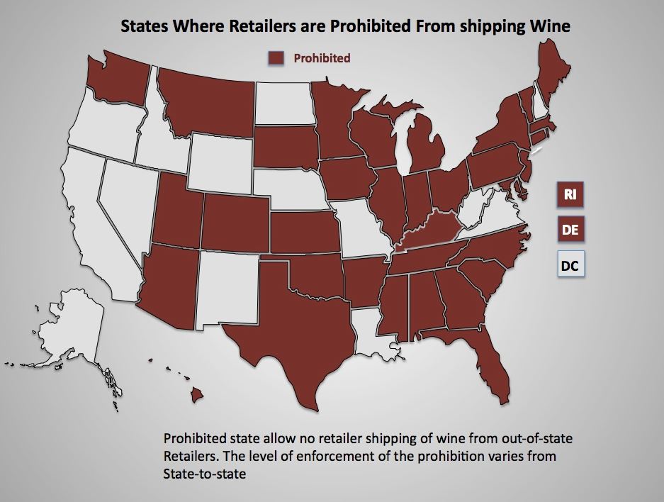 state laws that prevent wine drinkers from receiving wine from out-of-state. 45 states allow wine shipments