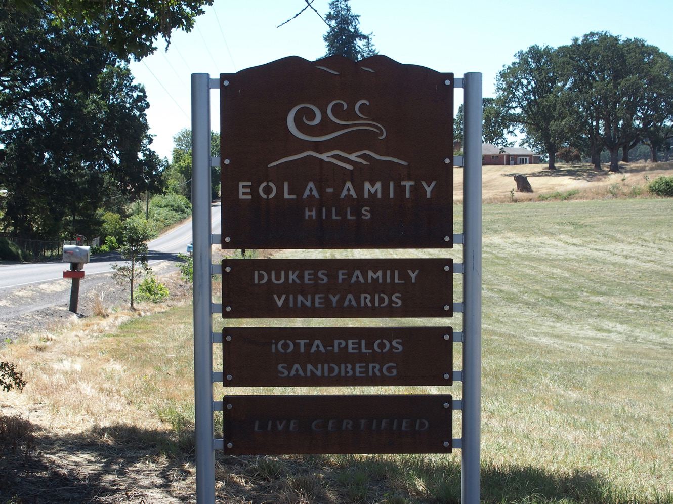 Hills in late July, I noticed new punched out metal roadside signs that indicated the location of wineries. The