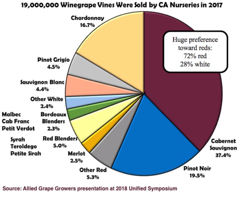 Pinot Noir vines sold by nurseries in California in 2017 were second only to Cabernet Sauvignon indicating