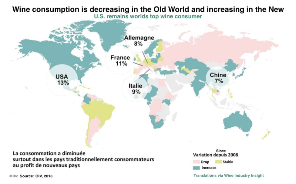 Interestingly, while wine consumption increases in the New World, with the U.S. as the world’s top wine