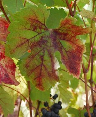and red veins accompanied by reduced Brix in the grapes at harvest.