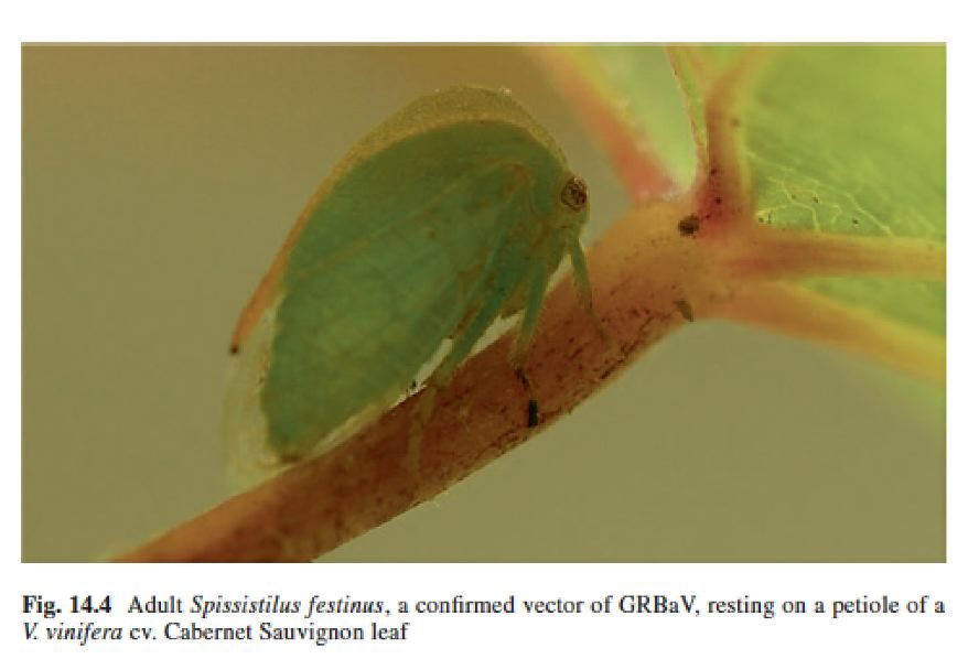 April 2018: The Proceedings of the 19th Congress of ICVG, Santiago, Chile, revealed the following. Keith Perry and Marc Fuchs studied the spread of GRBaV over a four year period (2014-2017) in a Cabernet Franc vineyard in California a Merlot vineyard in New York. The findings of spread in the California vineyard revealed S. festinus as a vector for GRBaV and suggested further testing of other possible vectors.