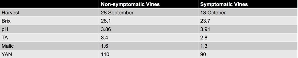 diseased vines can show reduced pH and elevated TA, and disturbed phenolics and tannins compared to