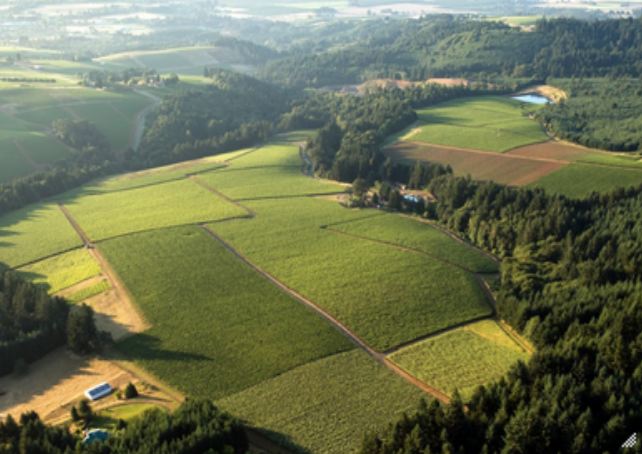 first planted by Cal Knudsen in 1972. By 1975, the vineyard, spread over 60 acres, was the largest in Oregon.