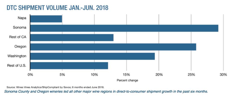 Sonoma & Oregon lead DTC Sales Change in First Half of 2018 According to Wines &