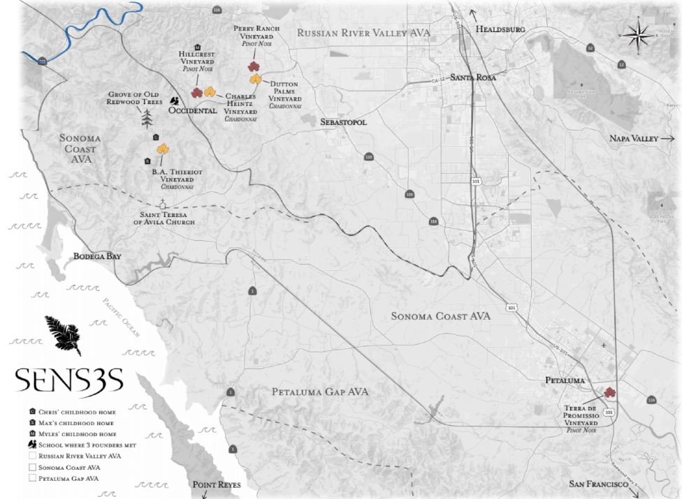 Occidental where the three founders grew up. Hillcrest and B.A. Thieriot are estate vineyards.