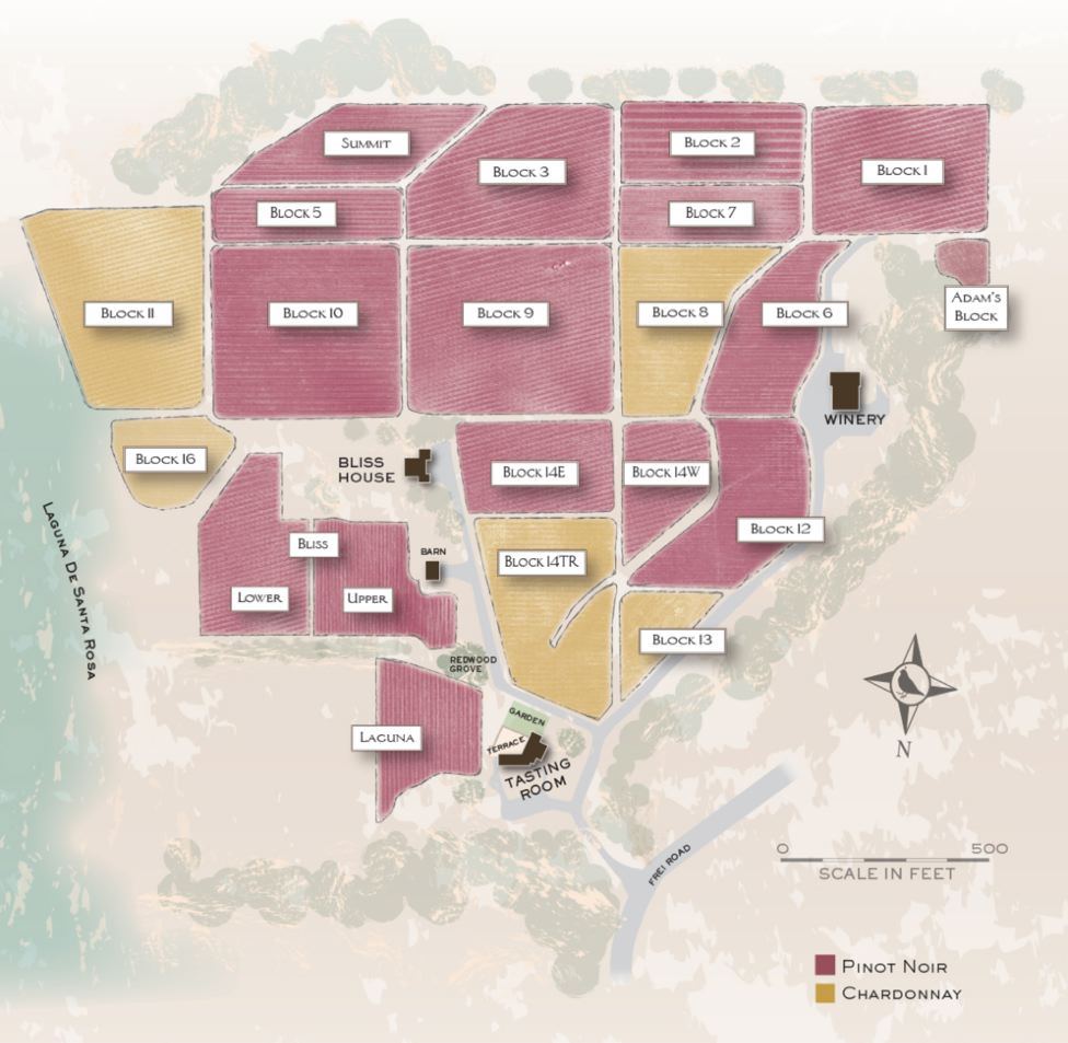and hospitality center (45 acres, 17 distinct blocks with 14 Pinot Noir and 4 Chardonnay clones/selections,