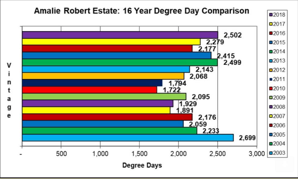vintage (2,699 degree days) and the 2014 vintage (2,499 degree days) has the growing season been so
