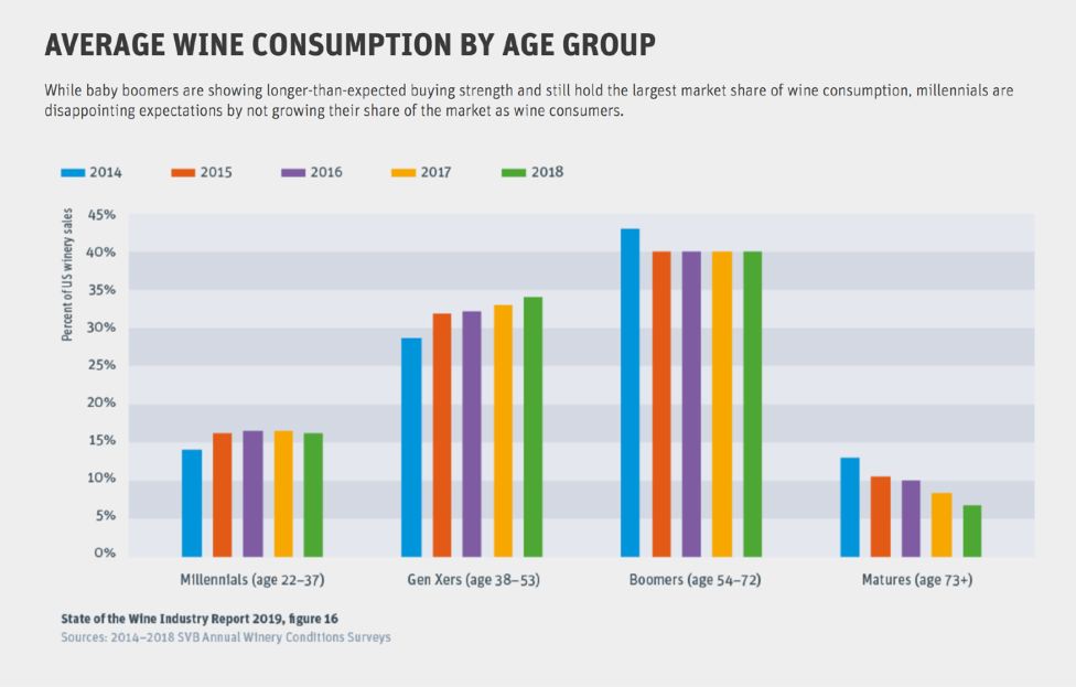 below); (2) Baby boomers still lead in total wine purchases but are declining in numbers and per capita