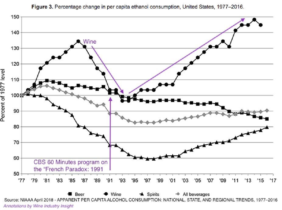 Percentage Change in Per Capita Ethanol Consumption in the U.S., 1977-2016