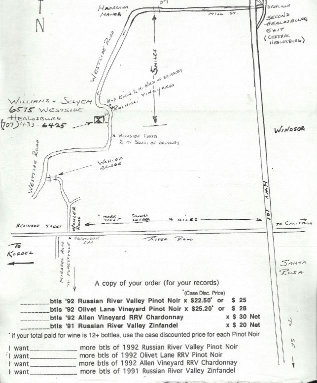 When I first signed up for the Williams Selyem mailing list in the very early 1990s, I received a personal letter