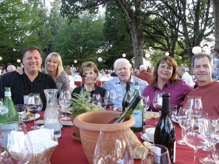 under the trees at Linfield College with winemakers, a special lunch at a winery, a multiple-course gourmet