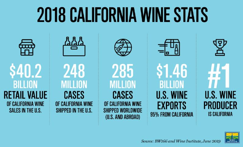 value of $40.2 billion in 2018, up 3% from 2017. California shipped 248 million 9-liter cases to the U.S. in 2018,