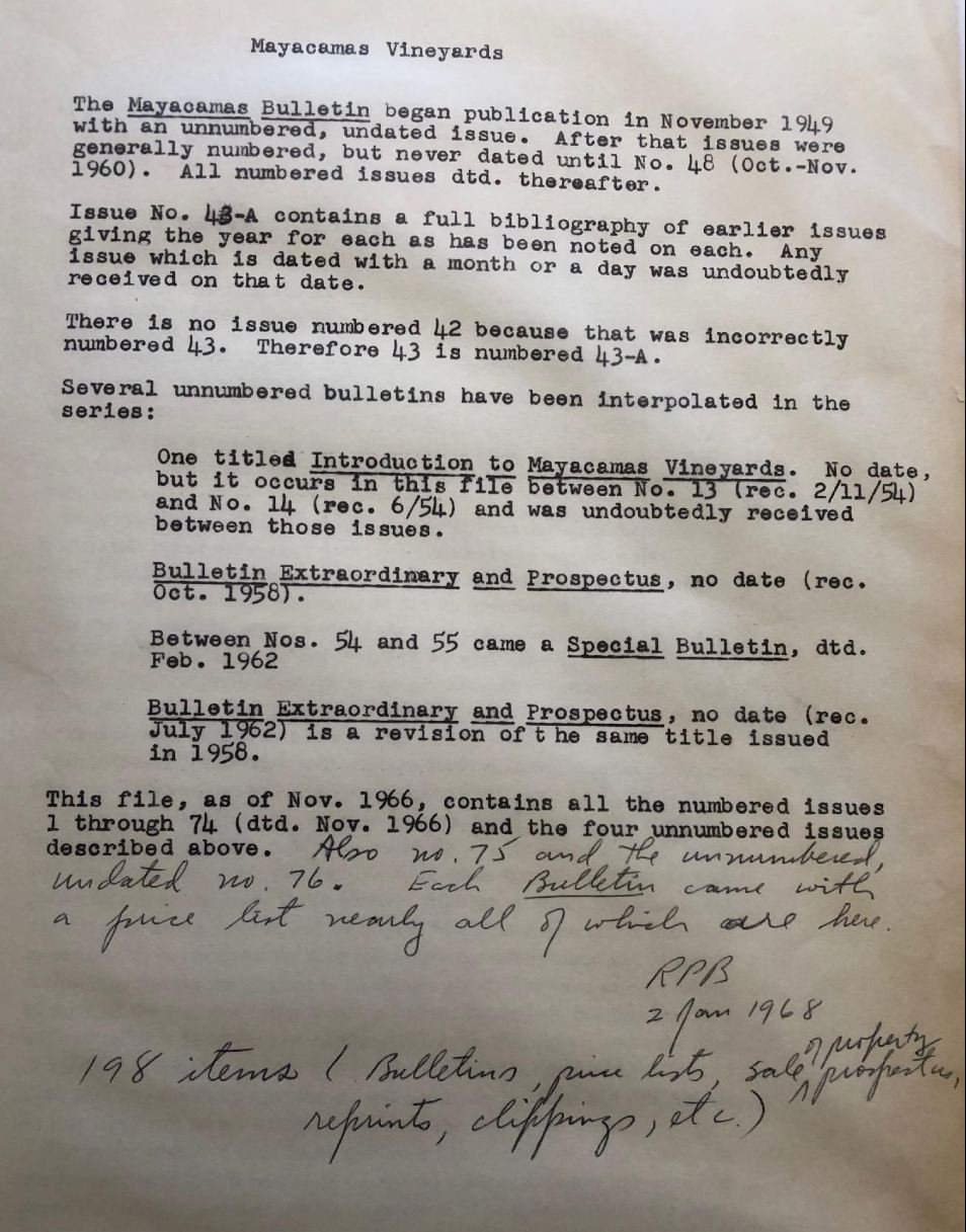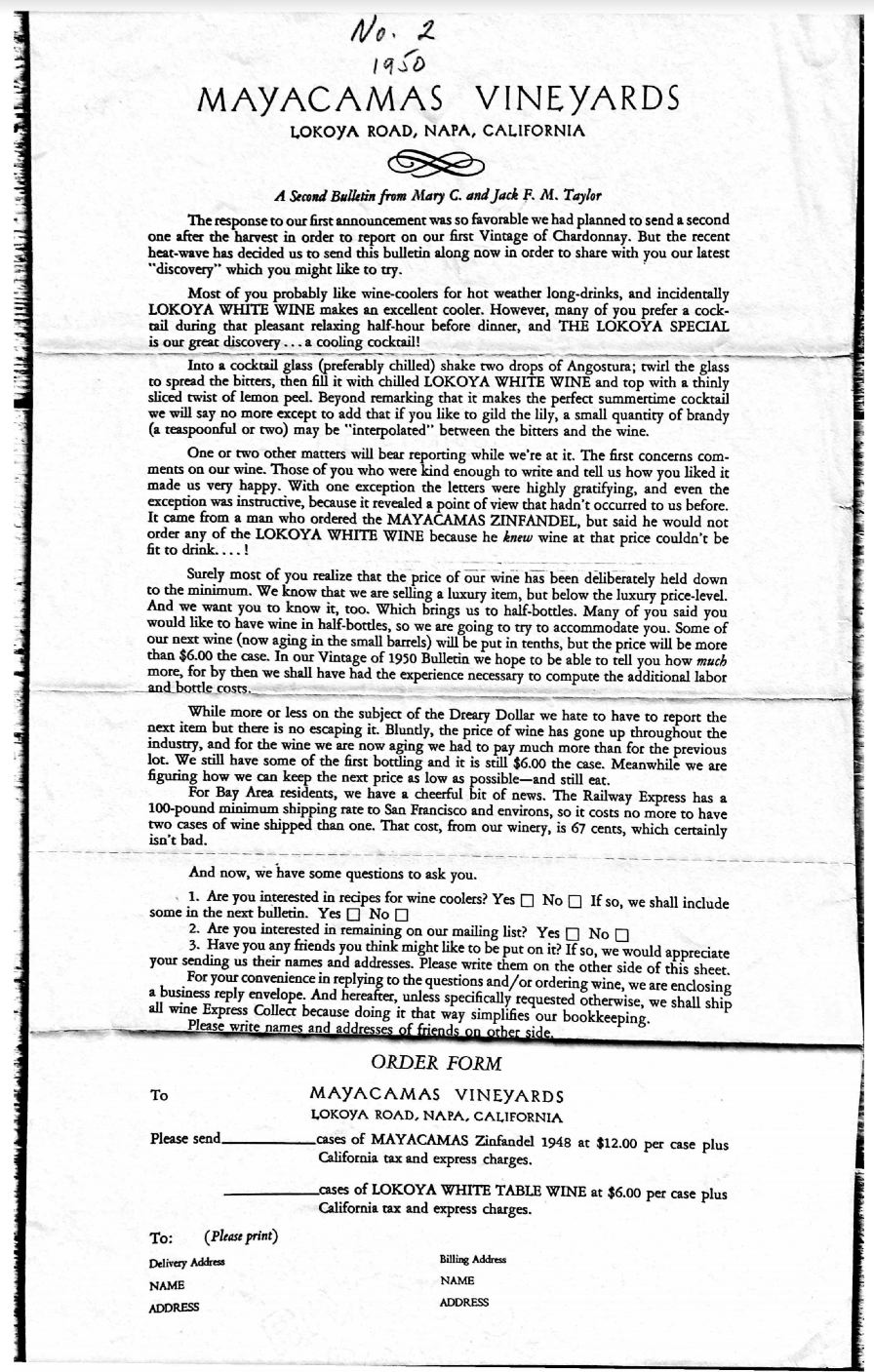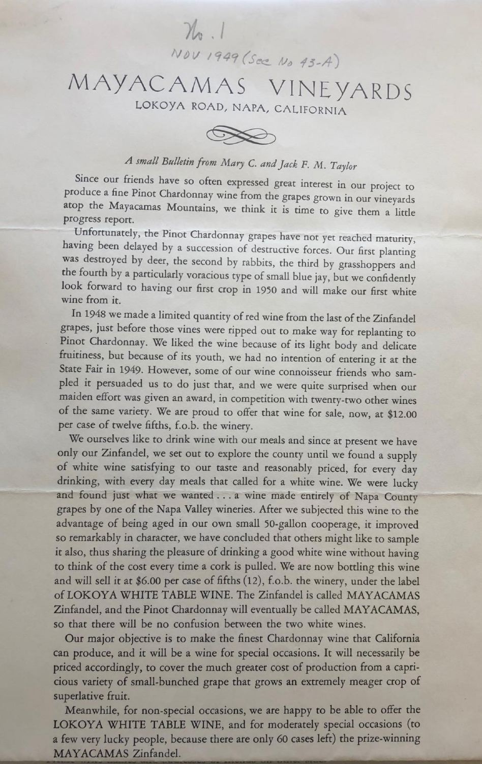 Mayacamas Vineyards may have had an active mailing list and sent out newsletters dating back to the 1940s.