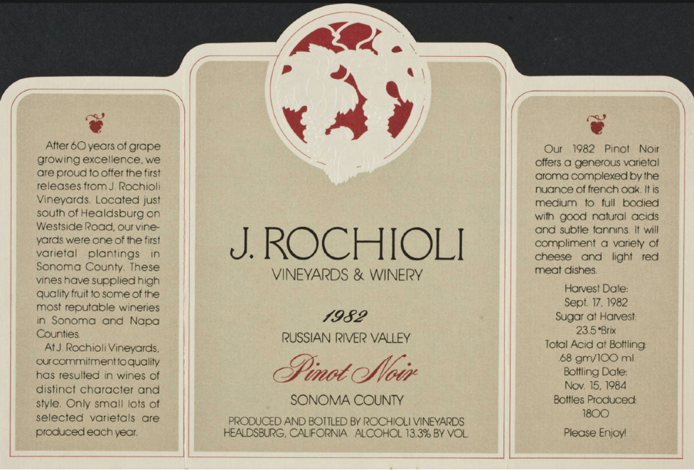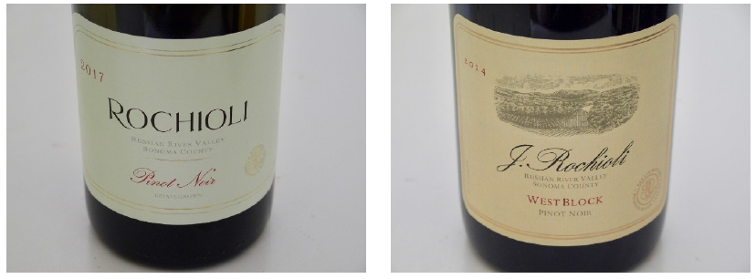 the single-block vineyard-designated Pinot Noirs and designated Chardonnays are labeled as J. Rochioli