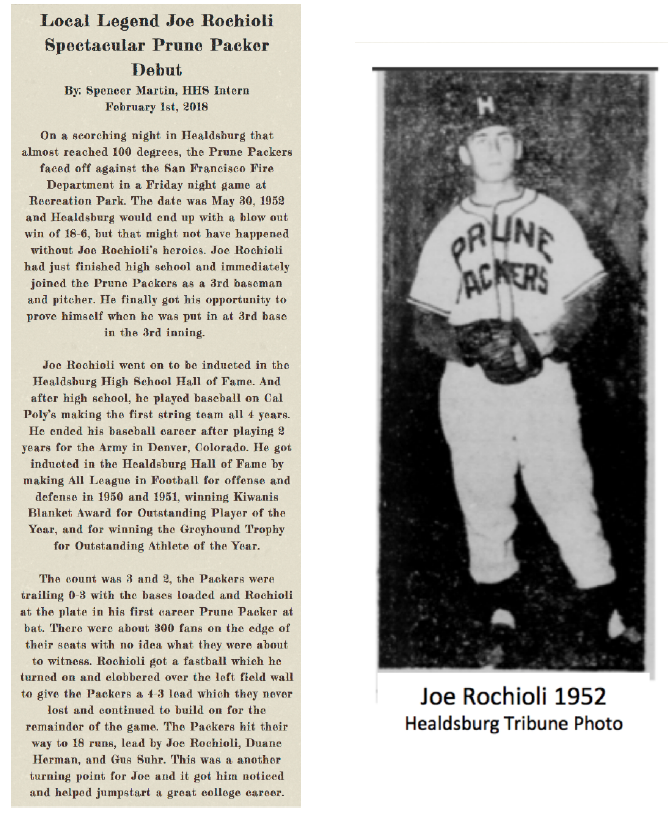 A Babe Ruth-like story has left a lasting legacy in Healdsburg sports lore. Joe had just graduated from high