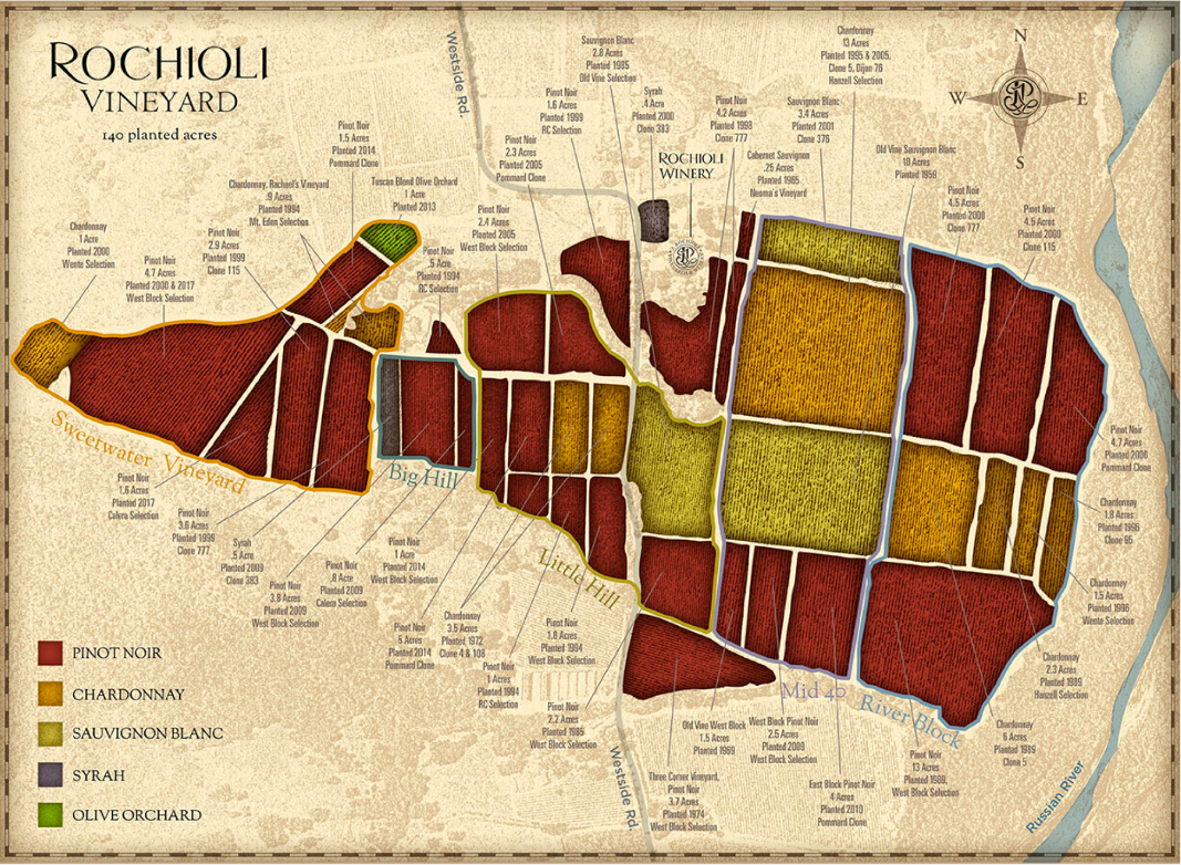 Rochioli Chardonnay is currently sold to Williams Selyem, Gary Farrell Vineyards & Winery and Ramey Wine