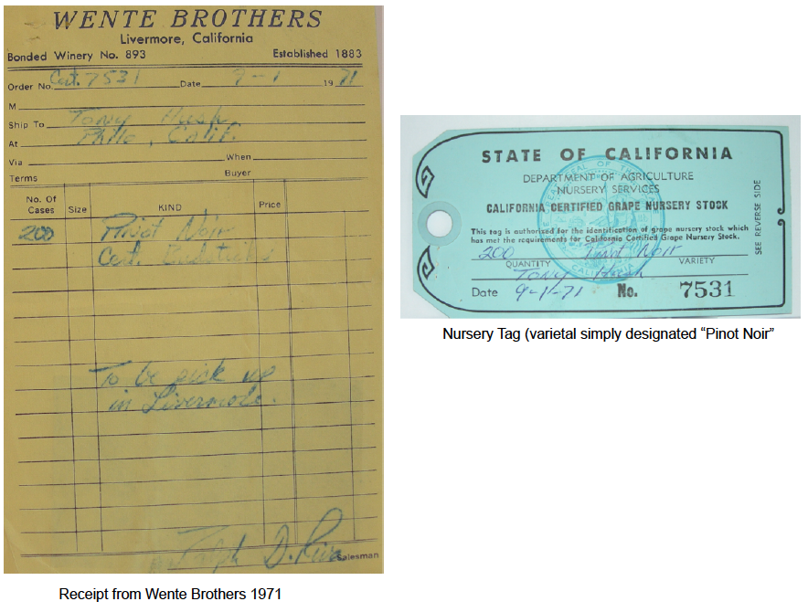 Scion: Budwood from Karl Wente’s estate vineyard in Livermore or Wente’s Arroyo Seco plantings in