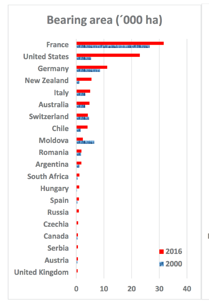 www.winegourdblogspot.com compiled the estimated growing areas in the year 2016 for 300 wine grape