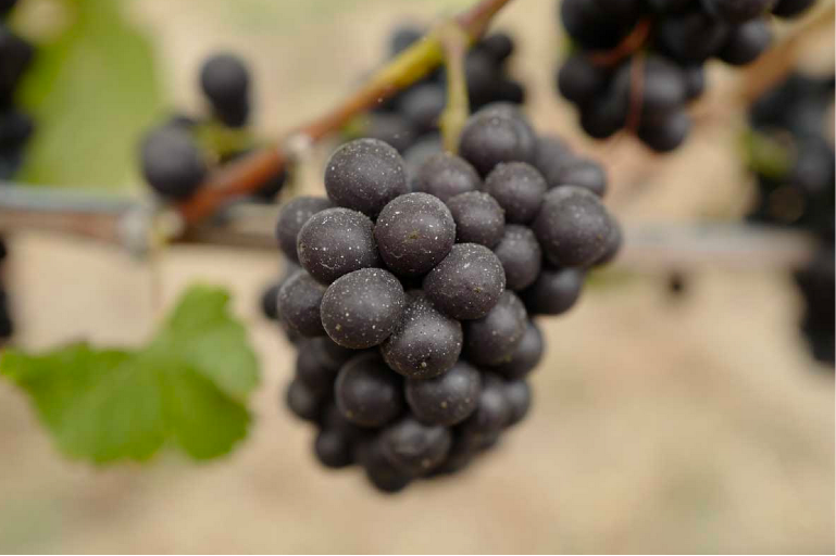 manageable in the winemaking process.” Ash on Pinot Noir grapes, EMTU Winery, Sonoma County: