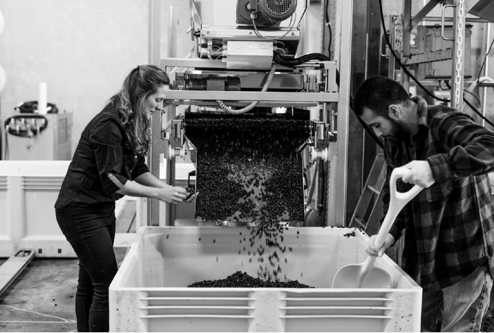 hand-sorting, 100% de-stemmed, native fermentation in opentop