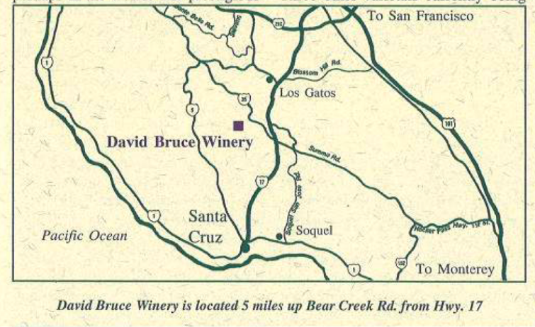 taken from David Bruce’s plantings in the Santa Cruz Mountains or cuttings from other vineyards planted with
