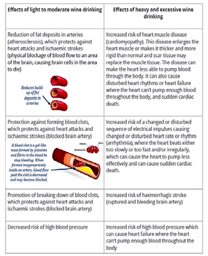 *Alcohol achieves its effect in a number of ways with polyphenols giving additional protection. The
