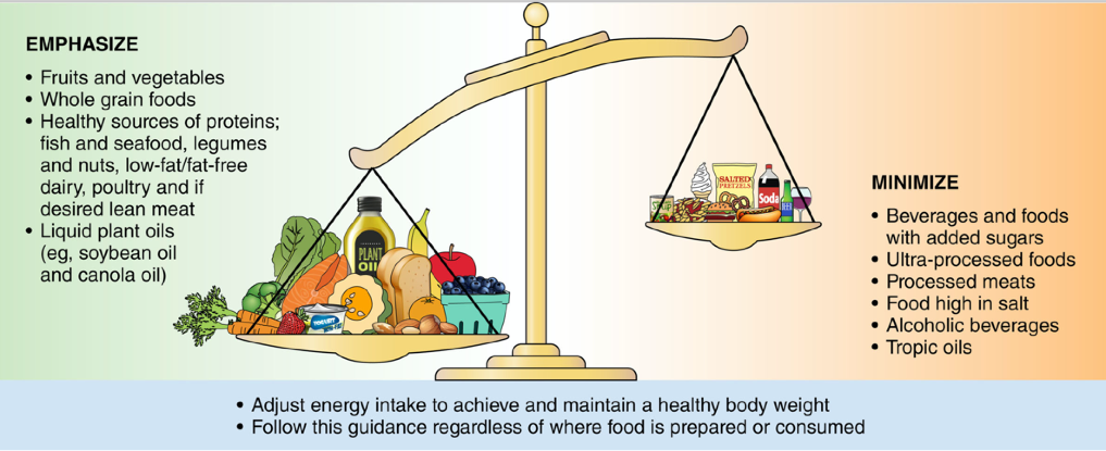 (mostly plants, regular intake of fish and seafood, low-fat or fat-free dairy products, and lean cuts and