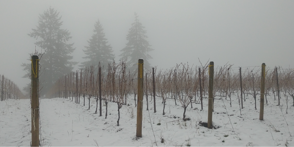 Contrast this with the photo of Nicholas Estate Vineyard in the Chehalem Mountains during the many days of