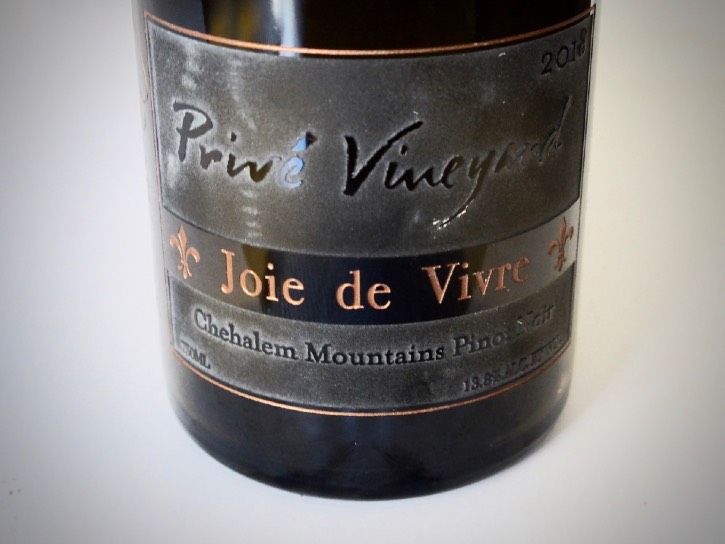last bottle of Privé Vineyard Pinot Noir in my cellar: the 2018 Privé Vineyard Joie de Vivre Chehalem