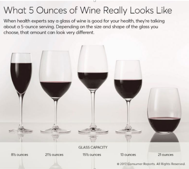 Drinking in “moderation” is widely accepted to be one standard drink or glass (5 ounces) of wine a day for