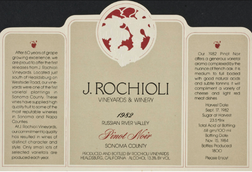 Rochioli Pinot Noir was the first contemporary Pinot Noir wine from the region labeled as originating in the