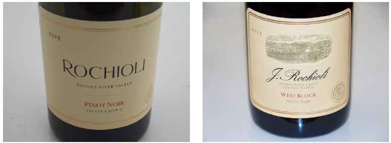 as blends of several single-block vineyards. The labels for Rochioli Estate Pinot Noir and J. Rochioli West