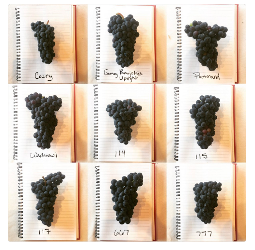 Foundation Plant Services (FPS) in Davis has about 95 unique Pinot Noir clones in its collection made available to the wine industry. Variations among Pinot Noir clones fit into four groups: (1) Pinot fin, (2) loose-clustered Mariafeld, (3) upright shoots or Pinot droit, and (4) fruitful or furtile Pinot fructifer. Most California vineyards employ Pinot fin clones such as 2A and 4 and these produce higher fruit yields and greater pruning weights than the Dijon clones. The Pinot family also includes Pinot Gris, Pinot Blanc, and Pinot Meunier….viticulturist Stan Grant