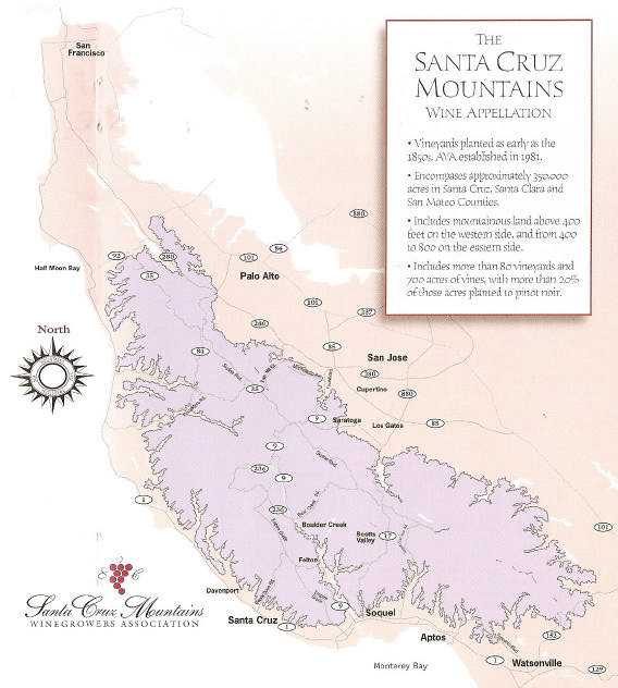 side. The squiggly outline of the Santa Cruz Mountains AVA reflects the fog line
