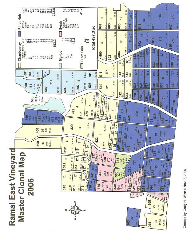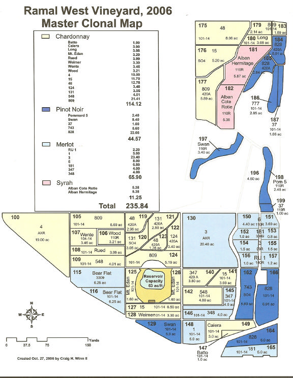 Syrah, Pinot Gris, Merlot, and Pinot Noir. The West portion of Ramal Vineyard is mostly all new