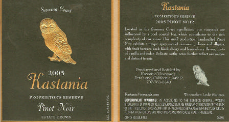 Kastania Vineyards* (5.3 acres of mainly Pinot Noir, few hundred cases of Pinot Noir)