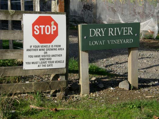 movement of vineyard machinery and plant material has been instituted (see photo at Dry River below).