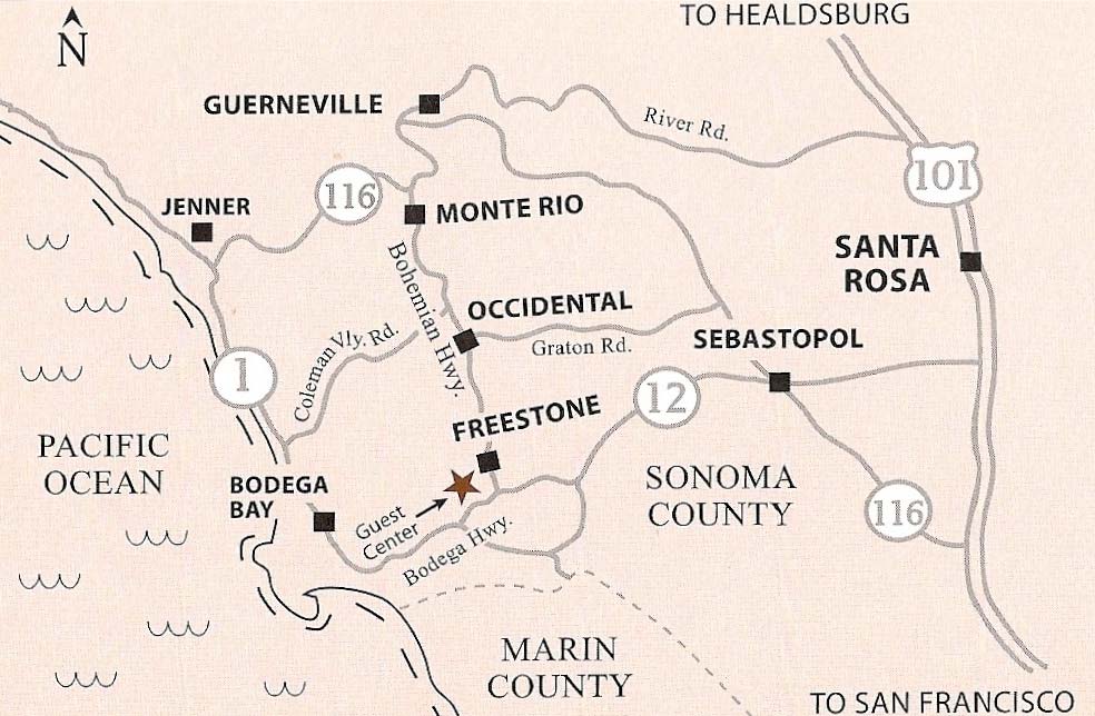 Freestone Vineyards Guest Center is located at the intersection of Bodega Highway (Highway 12) and
