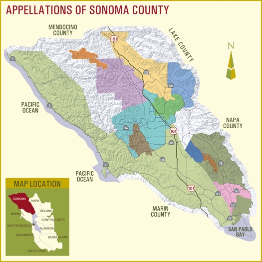 River Valley AVA is depicted in turquoise in the map below (the brown area is the Green Valley subappellation).