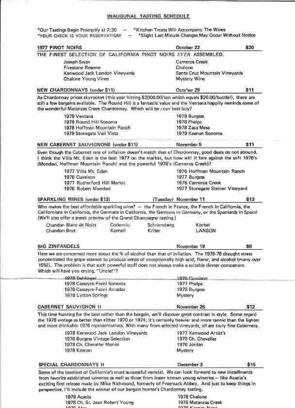 partial listing of the restaurant’s inaugural wine tasting schedule is on page 4.