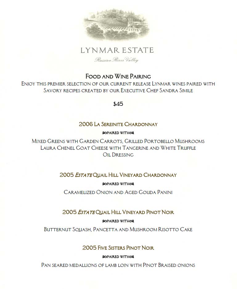 Valley Pinot Noir. Pair it with the Lynmar Estate Quail Hill Vineyard Chardonnay and you will think you have