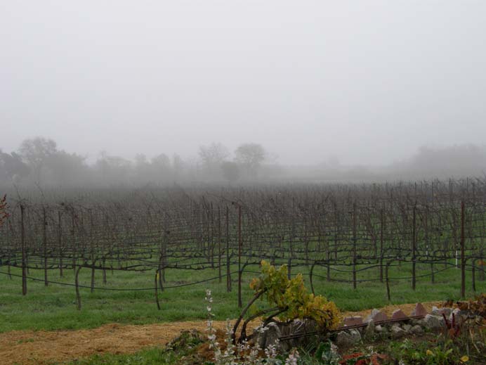 Several photos follow showing the Quail Hill Vineyard with typical Russian River Valley fog in December, the