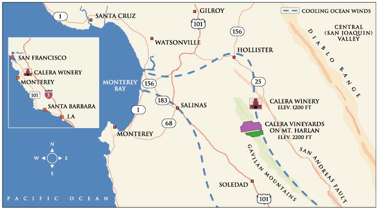 very long growing seasons and Calera often harvests well into October, after both Carneros and Sonoma