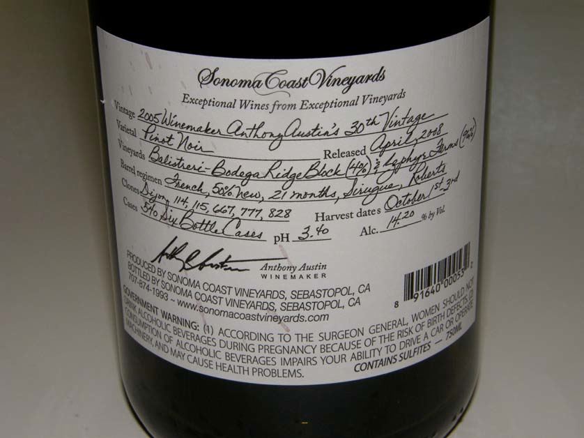 the other 2005 vintage Pinot Noirs from Sonoma Coast Vineyards. Tasted again the next day from a previously