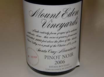 2000 Mount Eden Vineyards Estate Santa Cruz Mountains Pinot Noir (A lighter vintage showing the
